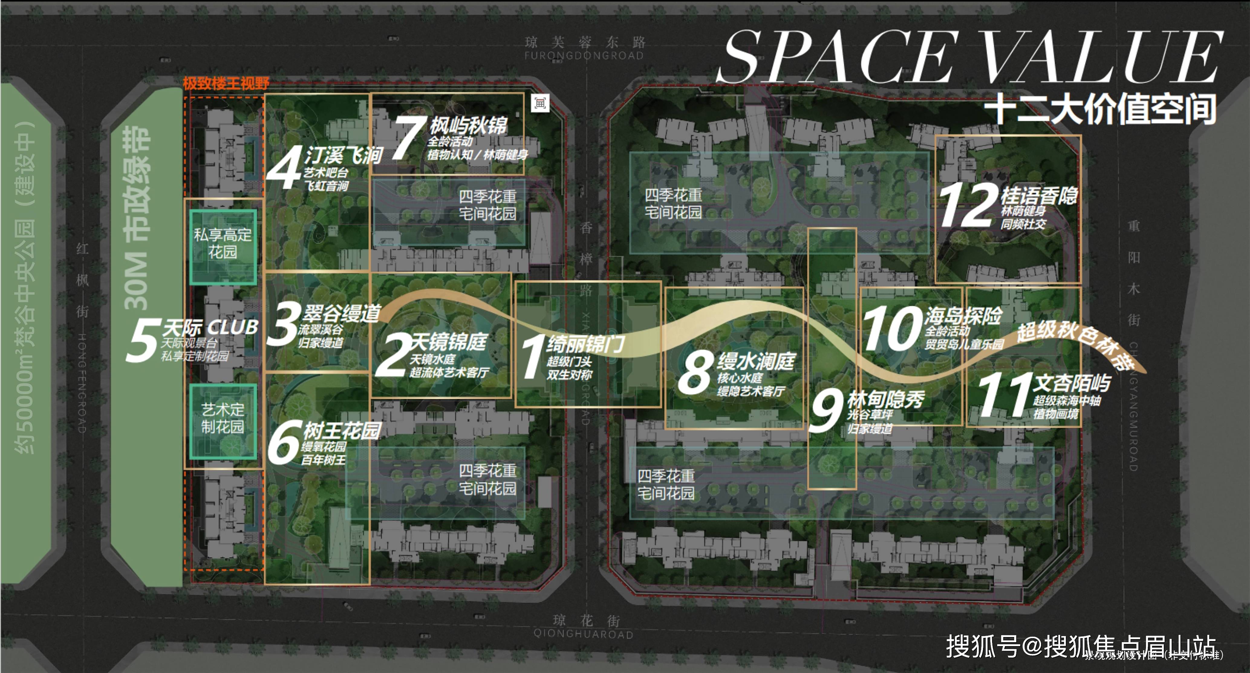 以梵谷地方公园为焦点,提出一轴、两心、八组团的款式,打制超100个精品项目,从城高端一体化价值轴线新高地,